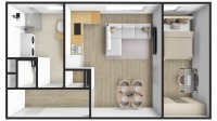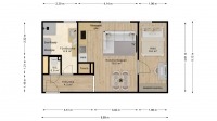 - Amerikai konyha nappali + 1 hálószoba és nagy ablakos fürdőszoba